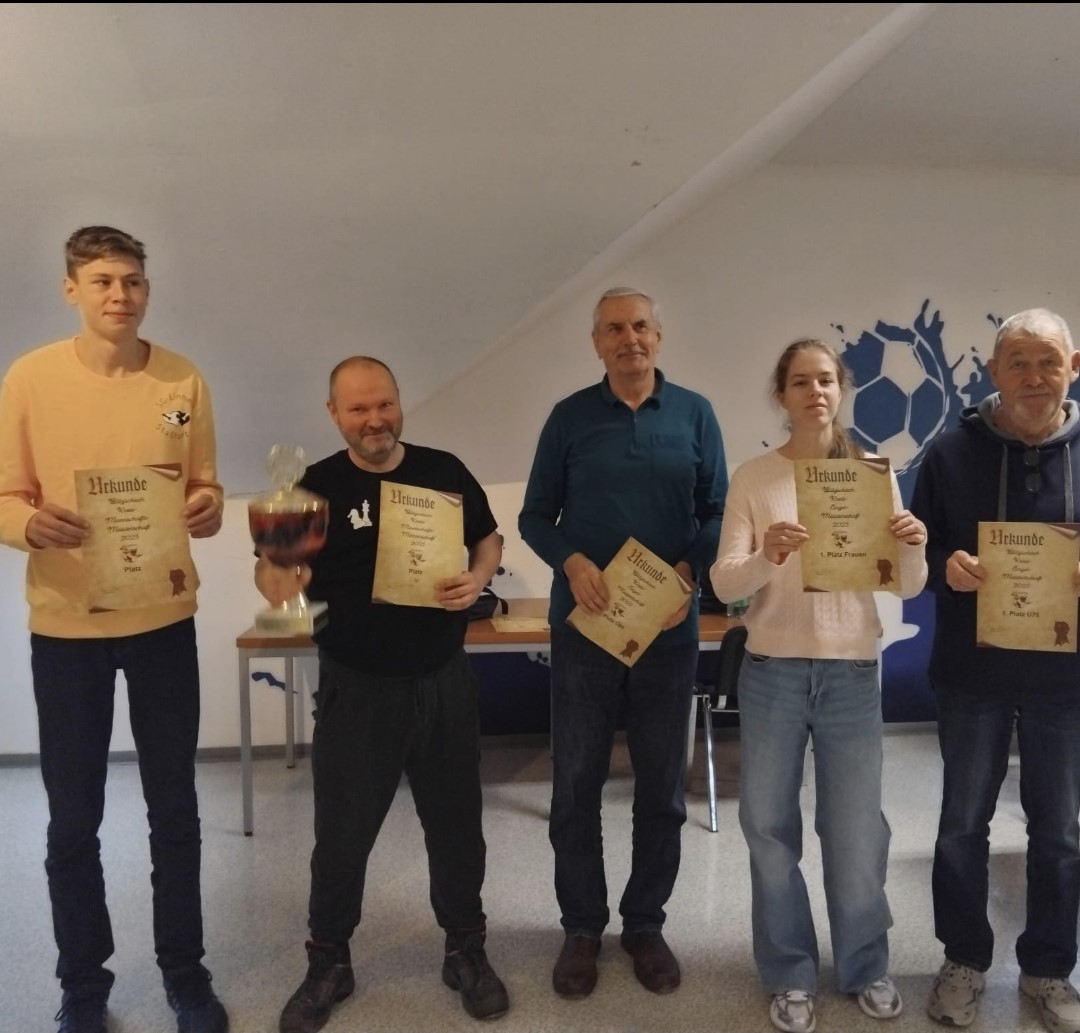 Das Blitzturnier des Salzlandkreises fand heute in Calbe statt. Bei 24 Teinehmern aus 4 Vereinen waren 23 Runden mit der Fischer-Bedenkzeit 3+2 zu absolvieren. Eine gute Kondition war somit gefragt. Am Ende musste ein Blitzstichkampf über den Turniersieg entscheiden. Michael Görgens (Schönebeck) konnte sich dabei gegen Jason Beck (Staßfurt) mit 1,5:0,5 durchsetzen. Beide hatten 19 Punkte auf ihrem Konto gehabt. Auf Platz drei kam Bernd Wagner (Bernburg) mit 18,5 Punkten. Bester Senior Ü75 wurde Burkhard Bauer, bester Senior Ü65 Bernd Wagner, beste Dame Daria Lobzova, bester Jugendlicher in beeindruckender Manier Jason Beck. Den Wanderpokal in der Mannschaftswertung sicherte sich Aufbau Bernburg in der Besetzung Bernd, Peter, Burkhard und Jürgen vor Calbe und Staßfurt.